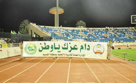 رسمت مباراة فريق التعاون والهلال يوم الجمعة الماضية كرنفالا وطنيا مبهرا تفاعلت معه الجماهير التي حضرت اللقاء مسجلة أعلى معدل للحضور حتى انتهاء الجولة الثالثة فقد شاركت الإدارة العامة للتربية والتعليم بمنطقة القصيم في رسم لون البهجة الوطنية بمناسبة اليوم الوطني الذي صادف يوم المباراة حيث تشكل طلاب مدارس تعليم القصيم ليهتفوا وسط مسيرة حاشدة داخل مضمار الملعب (لك الحب ياوطني.. لك كل الولاء أرضي) فيما كانت ميكروفونات الملعب تطلق الأناشيد الوطنية التي ألهبت الجماهير بين شوطي اللقاء وشهدت الاحتفالات الرائعة استعراضات مميزة للدراجات النارية وسط تنظيم ومتابعة مميزة من مكتب رعاية الشباب بالقصيم ممثلا بمديره الرائع الأستاذ عبد العزيز السناني الذي تابع كل الفقرات بدقة كبيرة.مدير إدارة النشاط الطلابي بتعليم القصيم الأستاذ يوسف الضالع قال إن المسيرة التي استهدفت مضامير جمهور كرة القدم تؤكد أن نسيج الوطن والحب الذي يعانقه يبقى في كل مكان وداخل كل طيف ونحمد الله أن طلاب القصيم رسموا البهجة الوطنية لآلاف الحضور وهو أقل ما تقدمه الإدارة العامة للتربية والتعليم تجاه الوطن الغالي ولم ينس الضالع أن يشكر كافة مسؤولي رعاية الشباب على اهتمامهم وتسهيلهم كافة المهام لإخراج الاحتفائية والمسيرة بشكل مبهر.