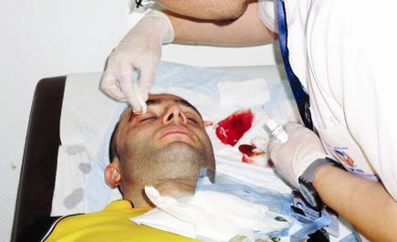 شهد تدريب الفريق الأول بنادي التعاون مساء أمس الأول الخميس، إصابة قويه ومفجعه للثنائي الأجنبي الألباني ميجين ميملي والسوري عبدالرزاق الحسين، ونتج عن ذلك إصابة الألباني ميقين ميملي إصابة قوية في حاجب العين اليمنى عبارة عن شج في الحاجب، مما جعل الطبيب المعالج يرتق القطع بأكثر من عشر غرز، بينما تعرض الحسين إلى إصابة قويه بالأنف الأمر الذي نتج عنه جرح ونزيف دموي بالأنف والفم، إضافة إلى تعرضه إلى فقدان للوعي لمدة قليله وأجرى له الدكتور أربع غرز في الأنف، إضافة إلى مطالبته لهم بالراحة التامة وقد أثر هذا التصادم على التدريب، خاصة وأن الإصابة كانت مفجعه للجميع، وقد رافق اللاعبين في المستشفى رئيس النادي المهندس محمد السراح والذي تابع حالتهم الصحية أولاً بأول.من جهته طمأن، السراح الجميع على حالة اللاعبين وأنها مستقرة، وهذه الإصابة قضاء وقدر ونحمد الله على سلامتهما وأضاف السراح قائلاً حالة التصادم حدثت إثر ارتقاء هوائي بين اللاعبين لضرب الكره بالرأس ومن هنا أحب أشكر الجميع على سؤالهم عن اللاعبين، متمنياً للاعبين الشفاء والعودة للفريق.