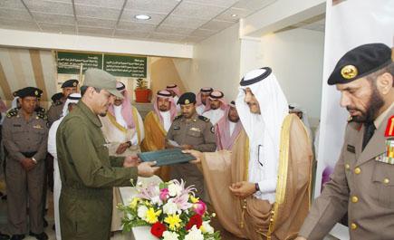 رفع سمو الأمير عبدالرحمن بن عبدالله بن فيصل محافظ المجمعة باسمة ونيابة عن أهلي المحافظة أجمل التهاني والتبريكات لمقام خادم الحرمين الشريفين ولسمو ولي عهده ولسمو النائب الثاني حفظهم الله بمناسبة نجاح العملية الجراحية التي أجريت لخادم الحرمين الشريفين وتكللت ولله الحمد بالنجاح.. جاء ذلك في تصريح خاص للجزيرة أدلى به سموه بعد الزيارة التفقدية التي قام بها صباح أمس الثلاثاء لشرطة محافظة المجمعة رافقه فيها وكيل المحافظة الأستاذ محمد بن عامر الخرصان، وكان في استقباله لدى وصولة مدير الشرطة العقيد صالح بن عبدالعزيز العقيل وعدد من مديري الجهات الأمنية في المحافظة.. وقد قام سموه فور وصولة بافتتاح شعبة الأدلة الجنائية وبعد إن قص الشريط إيذاناً بافتتاح الشعبة تجول ومرافقوه في أقسام الشرطة ولستمع إلى شرح من مدير الشرطة عن مهام كل قسم بعد ذلك تم تكريم الموظفين المميزين في أعمالهم في المركز من عسكريين ومدنين، حيث سلمهم سموه شهادات تقديرية، كما سلم مدير الشرطة درعاً تذكارياً لسمه بهذه المناسبة ودرعاً مماثلاً لوكيل المحافظة وفي تصريح للجزيرة عبر سمو الأمير عبدالرحمن بن عبدالله بن فيصل محافظ المجمعة عن سعادته وسروره بما شاهدة في المركز وأثنى على جهود رجال الأمن في المحافظة وتمنى لهم التوفيق والسداد.