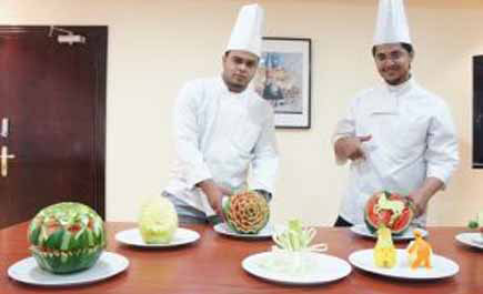 حيث تنافس المتدربون على نحت الأشكال المختلفة وعلى أصناف متعددة من الفواكه وتقديمها بطريقة جذابة.