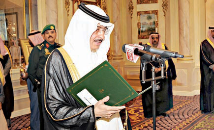 بسم الله الرحمن الرحيم.. أقسم بالله العظيم أن أكون مخلصاً لديني، ثم لمليكي وبلادي، وأن لا أبوح بسرٍ من أسرار الدولة وأن أحافظ على مصالحها وأنظمتها، وأن أؤدي أعمالي بالصدق والأمانة والإخلاص.