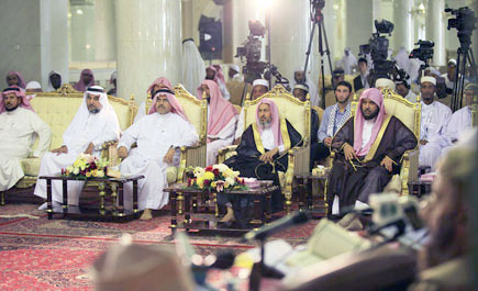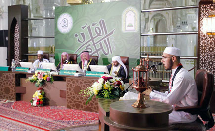 من جهة أخرى، شهد معالي نائب الرئيس العام لشؤون المسجد الحرام الشيخ الدكتور محمد بن ناصر الخزيم أمس جانباً من استماع، وتقييم لجنتي التحكيم لتلاوات المتسابقين في فروع المسابقة الخمسة.