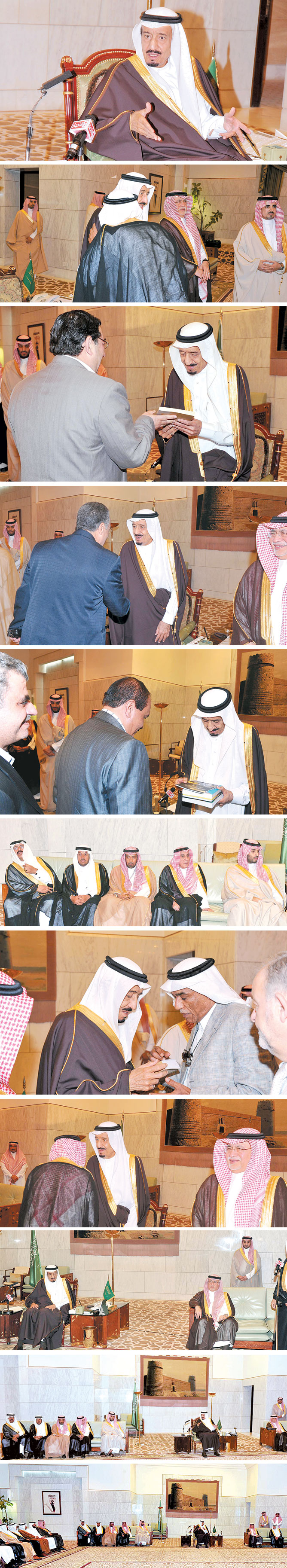 كعادة سموه وحرصه على الالتقاء بضيوف المملكة واستقباله المسؤولين، فقد حفل برنامج صاحب السمو الملكي الأمير سلمان بن عبد العزيز أمير منطقة الرياض خلال الأيام القليلة الماضية بالعديد من اللقاءات والاستقبالات لعدد من المسؤولين والضيوف آخرها كان أمس عندما استقبل سموه ضيوف معرض الرياض الدولي للكتاب لهذا العام 2011م، الذي تنظمه وزارة الثقافة والإعلام برعاية من خادم الحرمين الشريفين الملك عبدالله بن عبدالعزيز آل سعود - حفظه الله - يتقدمهم معالي وزير الثقافة والإعلام الدكتور عبدالعزيز محيي الدين خوجة.
