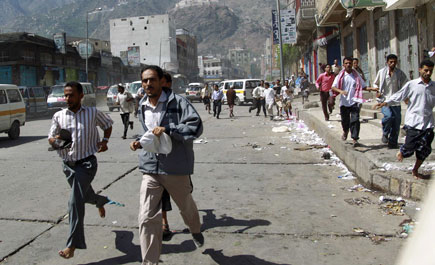 من جانب آخر اندلعت اشتباكات بين قوات الأمن في محافظة تعز (280 كيلو مترا جنوب صنعاء) ومسلحين من أحزاب المعارضة « اللقاء المشترك « أسفرت عن مصرع أحد المسلحين، وتشهد مدينة تعز استنفاراً أمنياً وعسكرياً، وتنتشر الآليات العسكرية في شوارع المدينة بعد أن قامت قوات الأمن باقتحام ساحة الاعتصام.. وتمركزت قوات من الجيش والأمن على مداخل مدينة تعز ومنعت من دخول المدينة، وفيما قالت مصادر في المعارضة إن سبعة أشخاص قتلوا في مواجهات الأمس مع رجال الأمن بشوارع مدينة تعز، إلا أن مصدر أمني نفى ذلك وقال إنه لم يقتل سوى مسلح واحد فقط من أحزاب المشترك