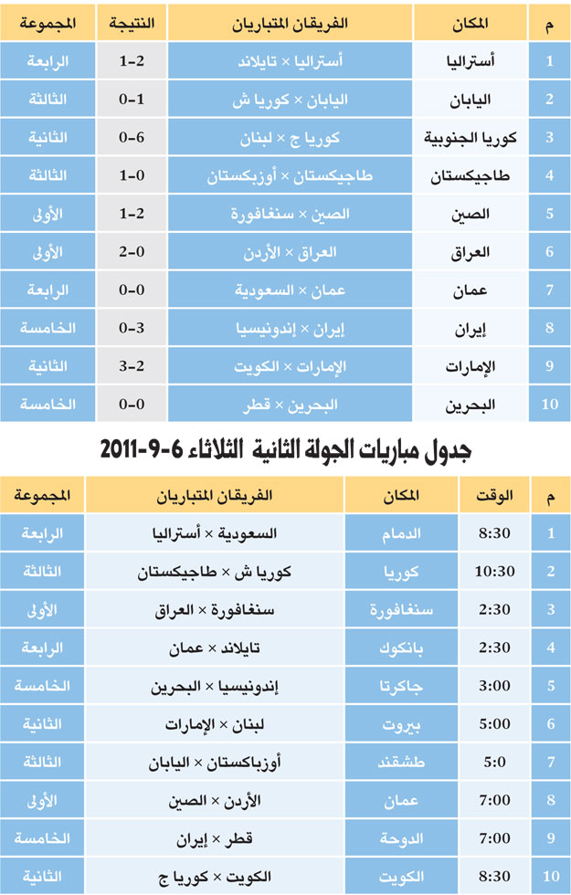 كان المهاجم الكوري الجنوبي بارك تشو- يونغ الذي انتقل مؤخراً للعب مع نادي أرسنال الإنكليزي أبرز نجوم الجولة الأولى بعدما سجل ثلاثة أهداف في المباراة التي تغلب فيها فريقه على لبنان 6-0.
