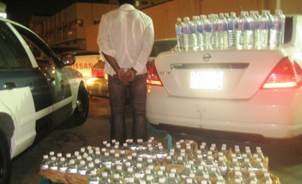وفي التفاصيل أنه أثناء قيام إحدى الدوريات بعملها شرق مدينة الرياض اشتبهت بسيارة من نوع نيسان لونها أبيض يستقلها وافد آسيوي وعند طلب الدورية منه الوقوف حاول الهرب بالسيارة فضيق الخناق عليه وإيقافه عندها ترجل من السيارة فتم الامساك به، وبالرجوع للسيارة التي كان يستقلها وجد أنها محملة بكميات كبيرة من الخمور تم تعبئتها في قوارير ماء من الحجم الكبير ووجد في المرتبة الخلفية من السيارة 153 قارورة من الخمور المصنعة محلياً تم التحفظ على المضبوطات وسلم الشخص لمركز شرطة منفوحة.