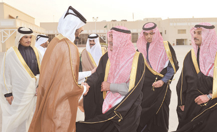 وكان في استقباله في مطار قاعدة الرياض الجوية صاحب السمو الملكي الأمير مقرن بن عبدالعزيز رئيس الاستخبارات العامة وسفير دولة قطر لدى المملكة علي بن عبدالله آل محمود وقائد قاعدة الرياض الجوية اللواء طيار ركن عبداللطيف بن عبدالله الشريم ومندوب عن المراسم الملكية.