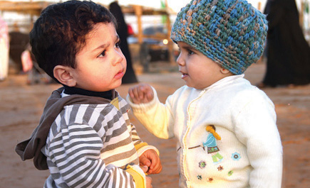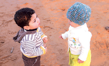 ففي الصورة الأولى تخطو الزهرة بثبات نحو الجهة المقابلة لتقف بتمعن بالغ كما يظهر في الصورة رقم (2) أمام أحد الأطفال الذي يبدو أنه يصغرها عمراً في حين لا يعلم هو ما المستقبل الذي ينتظره؟