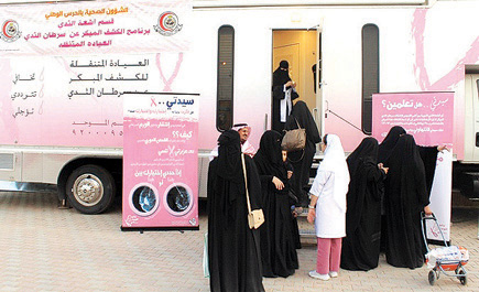 وقالت إن الحملة وفرت للزائرات فنيات من قسم أشعة الثدي في مدينة الملك عبد العزيز الطبية وطاقم كامل من مركز العبد اللطيف للكشف المبكر، مكون من طبيبة وفنيات أشعة ومثقفات صحيات وممرضات بالإضافة إلى متطوعات للقيام بأعمال التوعية.وأضافت: « لوحظ الإقبال الكثيف على العيادة المتنقلة منذ اليوم الأول وتم فحص ما يزيد عن 500 سيدة ، مما يدل على أهمية التواجد في مناسبات كهذه بالإضافة إلى أهمية حرص النساء على الكشف المبكر، الأمر الذي يساعد في الحد من وجود حالات متقدمة وزيادة نسب الشفاء من هذا المرض بإذن الله.
