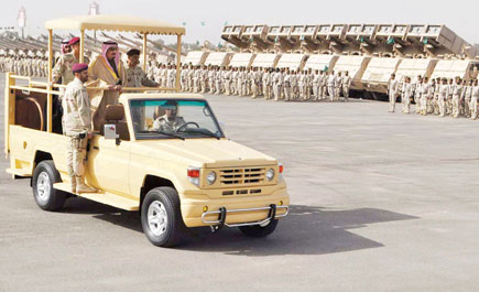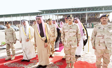 قام صاحب السمو الملكي الأمير سلمان بن عبد العزيز وزير الدفاع صباح أمس الثلاثاء بزيارة تفقدية لوحدات المنطقة الشمالية الغربية التقى خلالها بمنسوبي الوحدات بميدان العرض العسكري التابع لمجموعة لواء الملك فهد الثامن حيث كان في استقبال سموه عند وصوله للميدان معالي رئيس هيئة الأركان العامة الفريق أول ركن حسين بن عبد الله القبيل وصاحب السمو الملكي الفريق الركن خالد بن بندر بن عبد العزيز قائد القوات البرية وقائد المنطقة الشمالية الغربية اللواء الركن عيد بن عواض الشلوي وكبار ضباط القوات المسلحة بالمنطقة ومديرو الدوائر الحكومية والمسؤولون، وعزف السلام الملكي بعد ذلك استأذن قائد طابور العرض العسكري العميد الركن عبد الله بن سعيد القحطاني سموه ببدء العرض، حيث استقل سموه العربة المكشوفة ثم استعرض سمو وزير الدفاع الوحدات الرمزية لمختلف القوات المسلحة في المنطقة.