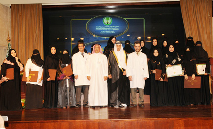 وأوضح الدكتور القصبي في كلمة له خلال تخريج الدفعة السادسة والعشرين من أطباء الدراسات العليا أمس أن المؤسسة حريصة جداً على دعم برامج التدريب والتعليم المستمر بهدف تطوير الكوادر الطبية من خلال 19 برنامجاً تدريبياً لشهادة الاختصاص السعودية (الاختصاص العام)، و61 برنامجاً للتخصص الدقيق مشيراً إلى أنه جرى هذا العام تخريج 82 طبيباً وطبيبة يمثلون قطاعات صحية مختلفة سواءً من داخل المملكة أو من بعض دول مجلس التعاون الخليجي.وفي نهاية الحفل قام الدكتور قاسم القصبي بتوزيع الشهادات على الخريجين وتم التقاط الصور التذكارية.