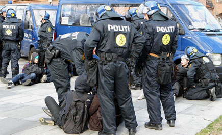 * قوات مكافحة الشغب الدينماركية تعتقل مجموعة من المتطرفين اليمينيين أثناء قيامهم بتجمعات معادية للمسلمين ..أ ف ب