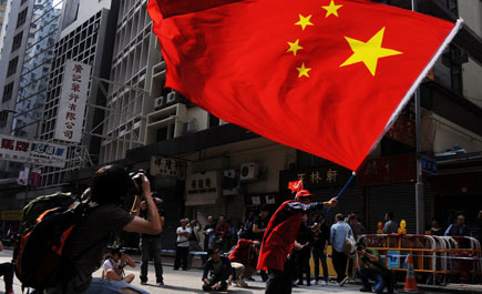 * رجل يلوح بالعلم الصيني أثناء الاحتجاجات ضد الحاكم الجديد لهونج كونج ..أ ف ب