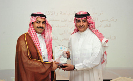 في اختتام فعاليات ملتقى السفر والاستثمار السياحي السعودي 2012، الذي أقامته الهيئة العامة للسياحة والآثار في مركز المعارض الدولي في الرياض، وعلى هامش «يوم المهنة»، كرَّمت كلية السياحة والآثار بجامعة الملك سعود، ممثلة في عميد الكلية الدكتور سعيد السعيد، الهيئة العامة للسياحة والآثار، ممثلة في الدكتور عبدالعزيز آل الشيخ نائب رئيس الهيئة للمساندة.