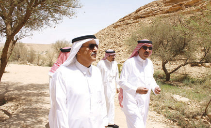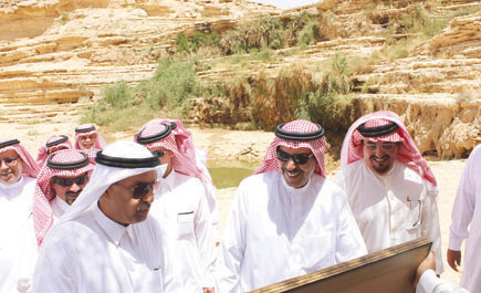 قام معالي وزير الزراعة الدكتور فهد عبد الرحمن بالغنييم بزيارة لمحافظة الغاط صباح أمس السبت الموافق 22-5-1433، حيث توجه معاليه عند وصوله لمقر المحافظة وكان باستقباله محافظ الغاط عبد الله بن ناصر السديري ووكيل المحافظ نايف بن فهد السديري وعدد من رؤساء الدوائر الحكومية. وقد رافق معاليه في هذه الزيارة معالي مدير عام صوامع الغلال ومطاحن الدقيق المهندس وليد عبد الكريم الخريجي والأستاذ عبد العزيز ناصر الجمعة مدير عام الموارد الطبيعبة بوزارة الزراعة والأستاذ عبد العزيز السرحان مدير عام العلاقات العامة والتعاون الدولي والأستاذ ماجد الماجد مدير عام الإدارة العامة لشؤون الزراعه بمنطقة الرياض. وبعد تناول القهوة بقاعة الاستقبالات بالمحافظ توجه معالي الوزير والمحافظ والوفد المرافق لمنتزه الغاط الوطني، حيث كان باستقباله بالمنتزه الأستاذ سلطان بن خالد السديري والأستاذ ناصر بن سعد السديري ومدير فرع الزراعة بالغاط سليمان بن صالح الصعب ومنسوبو فرع الزراعة بالغاط وعدد من المزارعين وبعد وصوله شاهد معاليه والحضور عرضاً مرئياً عن المنتزه وما تم به من أعمال وعن نشاط مركز الأمير سلطان البيئي بالغاط، ثم شرَّف معاليه حفل الإفطار وبعد الانتهاء من الإفطار شاهد معاليه نماذج لأشجار الطلح والسدر وبعض الشتلات التي يحتويها مشتل الغاط التابع لفرع الزراعة ثم اطلع على عدد من الصور التي تحكي مراحل العمل بالمنتزه منذ سنوات ثم قام معالي الوزير يرافقه المحافظ والحضور بزيارة لنبع قراد واطلع على ما تم تنفيذه من جلسات وأماكن للتتنزه واهتمام بالبيئة ثم توجه لعين القلتة المشهورة وشاهد نبع الماء الذي تشتهر به القلتة الذي يصب طوال العام بعدها قام معاليه والحضور بجولة على المنتزه وشاهد ما تم زراعته من أشجار الطلح والسدر والمسر والتي بلغت أكثر من 40 ألف شجرة خلال الخمسة الأعوام الماضية واستمع إلى شرح من مدير فرع الزراعة عن مراحل زراعة هذه الأشجار وعن ما سيتم خلال السنوات القادمة، بعدها تفضّل معالي الوزير بوضع حجر الأساس لمبنى إدارة المنتزه واستمع إلى شرح من مدير المنتزه عن ما يحتويه المبنى من أقسام وعن خطة عمل إدارة المنتزه بعد ذلك توجه معاليه والوفد المرافق إلى القرية الشعبية وتجول بالساحة الشعبية وأبدى إعجابه بما رآه من إعادة تأهيل واهتمام بالآثار، ثم قام معاليه ومرافقوه بجولة بمتحف الغاط واطلعوا على محتوياته منمقتنيات ومخطوطات وخرائط وتلقوا شرحاً كاملاً عن المتحف من قبل محافظ الغاط عبد الله السديري بعدها سجل كلمة بسجل الزيارات بالمتحف بعد ذلك توجه الجميع لنادي الحمادة، حيث حفل الغداء وكان باستقباله بالنادي معالي الأمير فهد بن خالد السديري ورؤساء الوائر الحكومية وعدد من المواطنين. وفي نهاية الزيارة تحدث معاليه عن هذه الزيارة قائلاً زيارتي للغاط جاءت بناءً على دعوة كريمة من الأخ عبد الله الناصر السديري محافظ الغاط من فترة طويلة ومنطلقها الرئيسي حرصه ضمن مسؤوليته على تنمية وتطوير المنتزه الوطني بالغاط، فرغب أن آتي واطلع على الأعمال التي تمت بالمنتزه ومحاولة وضع تصور مشترك بين وزارة الزراعة ومحافظة الغاط من أجل تطوير المنتزه، فالحمد لله سرّني ما رأيت اليوم بالمنتزه من الحفاظ على الأشجار وهذا يدل على أن هناك أناساً مهتمين بتطوير وتحسين المنتزه ونحن في وزارة الزراعة لا نملك إلا أن نتفاعل مع هذه الجهود الطيبة من أجل الحفاظ على البيئة وما يحتويه المنتزه من ينابيع وأماكن رائعة وإن شاء الله نرى منتزه الغاط من أجمل المنتزهات الطبيعية على مستوى المملكة وعن إمكانية تطوير فرع الزراعة بالغاط قال معاليه إن التوجه لدى الوزارة هو تطوير جميع الفروع بالمملكة وليس فرع الغاط فقط حتى يقوم بواجبه على أكمل وجه في خدمة المزارعين ومربي الماشية.