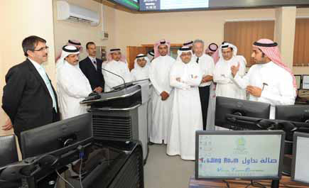 وبعد قص الشريط قام آل هيازع بجولة على معامل الكلية مبتدئاً بصالة تداول الأسهم، التي تحتوي على أجهزة كمبيوتر خاصة بالتداول وشاشة متحركة لعرض الأسهم المحلية والعالمية ومنصة رقمية لعضو هيئة التدريس، ويُعطى الطالب محافظ استثمارية افتراضية.