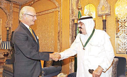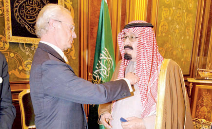 ملك السويد يقلِّد المليك وسام (الذئب البرونزي)