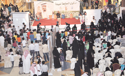 وشارك في المناسبة الفنان مشعل المطيري ومدير العلاقات بجمعية الأطفال المعوقين خالد الفهيد وبقيادة فرقة مفيد. وشهد الاحتفال تفاعلاً كبيراً من قبل الجمهور وتم توزيع أكثر من ألف علم وألف صورة للملك عبدالله واشتمل البرنامج على مسابقات وأناشيد وقصائد وطنية وتم توزيع جوائز وهدايا على الحضور.