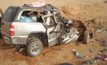 وقع حادث تصادم مروع بين سيارتين الأولى من نوع جمس، موديل 2002 يقودها مقيم يمني وبرفقته عائلته مكونة من 10 أفراد من بينهم زوجته وأبنائه وبناته، تتراوح أعمارهم من الشهر الواحد إلى 40 عاماً، في مؤخرة سيارة من نوع سطحة يقودها مقيم هندي، وذلك على مسافة 70 كيلومترا على طريق حوطة بني تميم - الأفلاج في ساعة متأخرة من الليل، ونجم عن الحادث الأليم وفاة قائد المركبة الجمس و2 من أبنائه و2 من بناته وقائد السطحة.