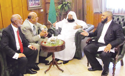 التقى الرئيس العام لشئون المسجد الحرام والمسجد النبوي الشيخ الدكتورعبدالرحمن بن عبدالعزيز السديس بمكتبة وزير التعليم العالي والتكنولوجي بجمهورية ترينيداد فضل كريم, ووزير الشئون الاجتماعية بجمهورية ترينيداد نظام بقش, وسفير السلام بالهيئة العالمية لنشر بالأمم المتحدة رئيس الجمعية الدعوية الكندية أبو هريرة شزاد محمد ومستشار شئون المسلمين مدير فرع الجمعية الدعوية في الكاريبية عمر خان.