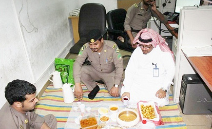 عند الدقائق الأولى من الإفطار وفي الوقت الذي يفضل البعض ملازمة بيته في تلك اللحظات ويتناول الإفطار مع أسرته والهدوء مخيم على معظم الشوارع تجد هناك إدارات تعمل بدون كلل أو ملل؛ ففي ذلك الوقت وبغرفة عمليات مرور محافظة الجبيل، حيث التقت «الجزيرة» بعدد من الأفراد على مائدتهم مناوبين وعلى رأس العمل لا يكاد يغمض لهم طرف مؤدين عملهم على أكمل وجه، بل يعملون وكأنهم خلية نحل فهناك منهم بالشوارع والأسواق منظمين لحركة السير وآخرين يرصدون تجاوزات بعض الشباب المراهق في مواقع تجمعاتهم حفاظا على سلامتهم وسلامة الآخرين وعدد منهم بجانب أجهزة الاتصالات متابعين ما يجري بالميدان مع زملائهم بالمحافظة، وتلقي بلاغات الحوادث وغيرها فيما يتعلق بالمرور، أما الإفطار فجميعهم يتناولونه برمضان في مواقعهم التي يتمركزون فيها باذلين قصارى جهدهم في أداء عملهم بأمانة وصدق مدركين أن هذا واجب عظيم فضلا عن ما فيه من الأجر والثواب وخصوصا في الشهر الفضيل، وهذا هو ديدنهم، وأثناء الإفطار لوحظ تتابع اتصالات بلاغات الحوادث، وتجاوبهم معها بكل مهنية والعمل على متابعتها مع الدوريات العاملة في الميدان، حيث إن أكثر الحوادث عادة ما تكون بالقرب من موعد الإفطار نظرا للسرعة ومنها قطع الإشارة وعن المخالفات التي ترد في تلك اللحظات تفحيط الشباب والذي يتم اتخاذ الإجراء اللازم معهم في حينه وحسب ما يقتضيه النظام.