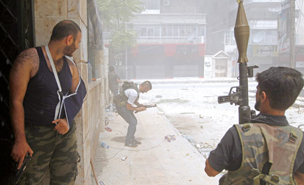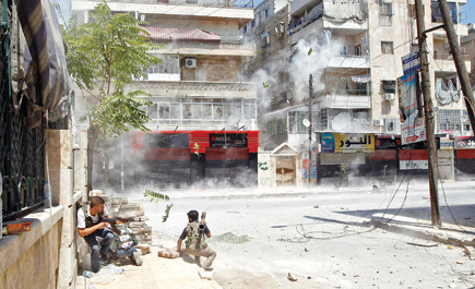 دمشق تبدأ بتقاطع «شارعين على جسد»، حيث بدأ ثوار الجيش السوري الحر ينقلون المعركة ضد قوات الأسد(داخل الأحياء)حيث شهدت أمس حرب شوارع ضد جيش الأسد الذي تآكل بفعل القتال العنيف والانشقاقات التي طالته لصالح الجيش السوري الحر لتدق بذلك آخر مسمار في نعش النظام نقل شهود عيان بأن قتالاً عنيفًا اندلع أمس السبت في قلب العاصمة دمشق بين قوات الجيش السوري الحر وقوات موالية للنظام وهذا ما يرجح قيام حرب أهليَّة راح ضحيتها عشرات الآلاف من السوريين وشردت الملايين منهم إلى مخيمات اللاجئين في دول الجوار بتركيا والأردن ولبنان، وقالت إحدى سكان العاصمة السورية دمشق: إن قوات موالية للرئيس بشار الأسد اشتبكت مع مقاتلي المعارضة في قلب دمشق قرب البنك المركزي أمس السبت. وأضافت طالبة عدم نشر اسمها خشية اعتقالها أن انفجارًا وقع وتلته الاشتباكات.