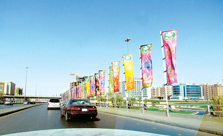 الأعلام واللوحات الترحيبية رسمت لوحة جمالية أثارت إعجاب مشاهديه، بل أثارت انتباه أي زائر قادم للعاصمة الرياض سواء من المطار أو من مداخل الرياض الأربع، عندها سيشعر أن العيد أصبح مناسبة لها طعم ورائحة.