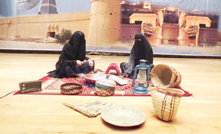 بعد ذلك قدمت الدمي سعيدة وعيدة وفرحانة نشيدًا ترحيبيًا بالعيد على أنغام جميلة طربت لها الحاضرات، بعدها قدمت مجموعة من البنات لوحات منوَّعة من الألعاب الشعبية بالملابس التراثية الدرعات والمخانق التي أسعدت الحاضرات ونقلتهن إلى عالم القدم والأصالة وتذكّر بالجدات والزمن الجميل.