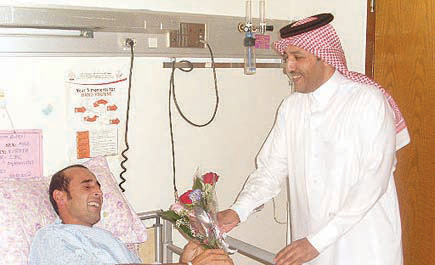 نظمت إدارة العلاقات العامة والإعلام بالتعاون مع قسم الخدمة الاجتماعية بمستشفى الأمير سلمان بن عبد العزيز وبمشاركة جمعية الأمير فهد بن سلمان الخيرية لرعاية مرضي الفشل الكلوي ( كلانا )، حفل معايدة للمرضى المنومين صباحية يوم العيد، حيث قام الدكتور خلف بن عبد الله العنزي مدير المستشفى بالنيابة يرافقة مدير الخدمات الطبية الدكتور عبد الدائم العنزي ومساعد المدير العام للشؤن الإدارية والخدمات والتشغيل الأستاذ محمد الشهري بزيارة المرضى المنومين بالأقسام الداخلية مرورا بقسم جراحة رجال والباطنية رجال وقسم العمليات اليوم الواحد والأطفال وتقديم ونقل تهنئة معالي وزير الصحة الدكتور عبد الله الربيعة وتحيات وتبريكات مدير عام الشؤون الصحية الدكتور عدنان عبد الكريم لهم بمناسبة العيد السعيد وتم تقديم باقات من الورود والهديا للمرضى المنومين وذكر مدير العلاقات العامة والإعلام بالمستشفى احمد بن عبد العزيز الزعاقي بأن المستشفي حريص كل الحرص على مثل هذه المناسبات من اجل ادخال البهجة والسرور للمرضى وتخفيف ألم البعد عن ذويهم بسبب مرضهم وبقائهم بالمستشفى.