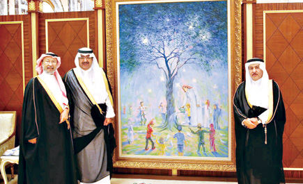 لم تخطئ أعين الكثير من التشكيليين اللوحة التي عرضت في مدخل قاعة المؤتمرات بقصر الصفا خلال إقامة مؤتمر التضامن الإسلامي الاستثنائي الذي أقيم في السابع والعشرين من رمضان التي ظهرت خلال النقل التلفزيوني للحظات استقبال الوفود المشاركة في المؤتمر والتي أخذت موقعها المناسب في المكان والمكانة عوداً إلى الفكرة التي تجسدت فيها وتظهر الملك عبدالله يسقي شجرة مضيئة تشق عباب السماء تمثل مشروع تأسيسه لفكرة حوار الأديان متبعاً يحفظه الله ما تعنيه الكلمة الطيبة في إعادة الحق والتوازن في العلاقات بين أفراد المجتمعات {أَلَمْ تَرَ كَيْفَ ضَرَبَ اللّهُ مَثَلاً كَلِمَةً طَيِّبَةً كَشَجَرةٍ طَيِّبَةٍ أَصْلُهَا ثَابِتٌ وَفَرْعُهَا فِي السَّمَاء تُؤْتِي أُكُلَهَا كُلَّ حِينٍ بِإِذْنِ رَبِّهَا}، وكنت حريصاً وغيري من التشكيليين للتعرف على محتواها ومن قام بتنفيذها مع توقعي أنها من إبداع الفنان ضياء عزيز ضياء الممتلك لأسلوب عالمي لا يمكن أن يجهله من يتابع مسيرته الإبداعية العالمية الشهرة.