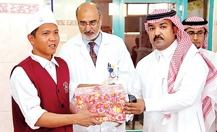 احتفت إدارة مستشفى حوطة سدير بعامل فلبيني اعتنــق الإسلام مؤخراً؛ حيث قام مدير المستشفى الأستاذ عبدالله البخيِّت بتكريمه، والاحتفاء به، في بادرة تعكــس جهود المسؤوليــن في ترغيب العاملين لديهم ممن يعتنقون دينــاً غير الإسلام للدخــول في الإسلام، من خلال حسن معاملتهم ودعوتهم للدين الإسلامي.