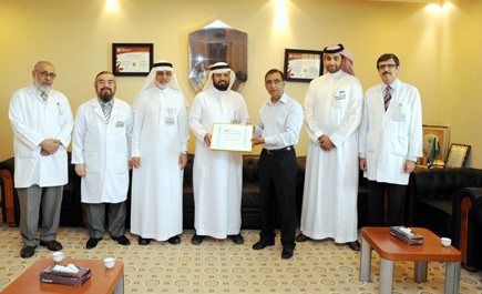 وقد استقبل عميد كلية الطب والمشرف على المستشفيات الجامعية الأستاذ الدكتور مبارك بن فهاد آل فاران الأستاذ الدكتور غلام مفتي أحد مؤسسي المنظمة وتسليم الشهادة بحضور كل من الدكتور خالد عبدالرحمن الصالح رئيس وحدة الدم والأورام والأستاذ الدكتور عبدالكريم المؤمن (ممثل المستشفى) والدكتور عامر عليم والدكتور كمال الحجي والدكتور شهاب المشهداني، وذكر الدكتور المؤمن أن هذه الشهادة لا تمنح إلا لعدد قليل من المراكز الطبية المرموقة في العالم وهي المراكز التي تتوفر فيها مختبرات تشخيصية متطورة وخبراء في علاج ومتابعة حالات متلازمة خلل التنسج النقوي والاهتمام ببحوث متلازمة خلل التنسج النقوي ووجود بحوث علمية منشورة في مجلات علمية محكمة.والجدير بالذكر أن هذه الشهادة لم تمنح إلا لمستشفيين اثنين فقط في العالم العربي وكلاهما في المملكة العربية السعودية وهما مستشفى الملك خالد الجامعي بجامعة الملك سعود ومستشفى الملك فيصل التخصصي ومركز الأبحاث.