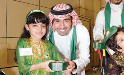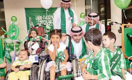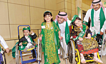 بمشاركة صاحب السمو الملكي الأمير عبدالله بن متعب بن عبدالله بن عبدالعزيز احتفل نحو ثلاثمائة طفل وطفلة من منسوبي مركز جمعية الأطفال المعوقين بالرياض بمناسبة اليوم الوطني في مهرجان رائع شهد حضور عدد من أعضاء مجلس إدارة الجمعية والإعلاميين.