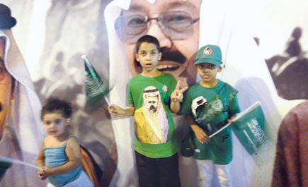 شارك أطفال الوطن الغالي في كافة محافظات مملكتنا الغالية في احتفالات الذكري 82 لتأسيس هذا الكيان الوطني تحت راية التوحيد الذي أرسى قواعده المغفور له الملك عبدالعزيز بن عبدالرحمن آل سعود طيب الله ثراه، ومن ضمن هذه الاحتفالات الوطنية التي سعد الصغار بالمشاركة فيها الاحتفالات التي نظمتها أمانة منطقة الرياض بمناسبة الذكرى 82 للوطن الغالي في عدة مواقع من مدينة الرياض، حيث أقيمت فعاليات متنوعة في ساحة العروض بالدائري الشرقي ضمت أربعة مسارح للعروض شارك فيه الأطفال، حيث قدم الطفل خالد المهيدب قصيدة شعرية نالت إعجاب الحضور وسط أمواج الأعلام الخضراء، واشتمل المسرح الثاني الذي أعد للطفل على العديد من الفقرات منها الأناشيد الوطنية وعروض الشخصيات الكرتونية والمسابقات وأوبريت الوطن الذي أداه نواف الطلحة والطفلة رغد على أنغام حب الوطن وتفاعل معه الصغار، وعلى المسرح الثالث قدمت فرقة انساع الخليج مجموعة من الأناشيد الوطنية بالإضافة إلى مسابقات الأطفال والكبار وفي المسرح الرابع قدمت فعاليات متنوعة ومسابقات للأطفال، وقد جسد الأطفال هذا الحب الكبير للوطن والانتماء الوطني بارتداء التي شيرتات والقبعات والأعلام التي تحمل صور خادم الحرمين الشريفين الملك عبدالله بن عبدالعزيز وولي العهد الأمين صاحب السمو الملكي الأمير سلمان بن عبدالعزيز والنائب الثاني -حفظهما الله- وحملوا الأعلام بأيديهم الصغيرة مرددين الأناشيد الوطنية، وقد عبر مجموعة من الأطفال عن مشاعرهم الصادقة بمناسبة ذكرى اليوم الوطني، حيث يقول الطالب مشاري أنا أحب وطني الذي أعطاني كل شيء وأعيش فيه بكل أمن واطمئنان أنا وأهلي، كما أحب الملك عبدالله وأدعو الله أن يطيل في عمره فقد منحنا يومين إجازة سعدنا فيها، ويقول الطفلان ياسر وصالح يارب تحفظ بابا عبدالله وتحفظ وطننا الحلو، وتقول الطالبة أميرة الدوسري بالصف السادس الابتدائي أنا أحب وطني وأفتخر بأني سعودية بلد الحرمين الشريفين وقبلة المسلمين وبالبطل المؤسس الملك عبدالعزيز رحمه الله، فقد بنى وطننا الكبير الذي نعيش فيه برخاء، الحمد لله بأنني سعودي ومليكنا المحبوب الملك عبدالله الله يحفظه لنا.