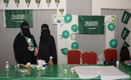 كما شاركت لجنة الفنون التشكيليَّة في الجمعيَّة بعدد من الأركان موجهة للصغار والكبار وبينت الفنانة التشكيليَّة سلمى الشيخ أن اللجنة شاركت بأربعة أركان وهي المرسم الحر وأركان التلوين للأطفال إلى جانب ركن «عبري عن حبك للوطن» وهي جداريَّة متاحة للزائرات يعبِّرن فيها عن مشاعرهن برسومات وطنيَّة، وقالت الشيخ: «اليوم الوطني يوم عظيم يتوحد فيه كل المواطنين ويستشعرون فيه الولاء والانتماء للوطن لذلك حاولنا من خلال الأركان المشاركة تأصيل هذا المفهوم لدى الزائرات فشاركنا بركن «شجرة الولاء» لكتابة العبارات الوطنيَّة وتعليقها تحت إشراف أثير الدوغان.
