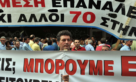 - عمال يونانيون يحتجون في العاصمة أثينا خارج وزارة العمل؛ وذلك لتوقف أحد المصانع عن الإنتاج ودفع الرواتب لهم.. رويترز