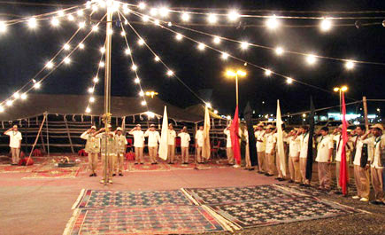 افتتح مدير التربية والتعليم بالقريات الأستاذ سالم الدوسري, وبحضور مشرف الوزارة الدكتور ناصر الهويش, وعدد من المسؤولين فعاليات المخيم الكشفي الثامن لخدمة ضيوف الرحمن الذي شهد افتتاحاً بالتقاليد الكشفية. وخلال الحفل ألقى مشرف النشاط الكشفي الأستاذ عبدالهادي الثويني, كلمة استعرض من خلالها خطة المخيم والخدمات التي تقدم لضيوف الرحمن والبرامج التي تقدم أيضا للطلبة الكشافة العاملين بخدمة ضيوف الرحمن, ثم ألقى عضو وزارة الشؤون الإسلامية والدعوة والإرشاد كلمة بالمناسبة. ثم قدم استعراضاً مرئياً عن مسيرة المخيم طيلة السنوات الماضية, بعد ذلك أعلن الدوسري, افتتاح أعمال المخيم رسمياً, وتكريم الجهات الداعمة والعاملة بالمخيم وكذلك المدارس والقادة الكشفيين.