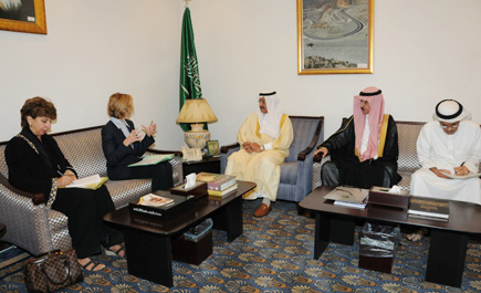 استقبل صاحب السمو الملكي الأمير الدكتور منصور بن متعب بن عبد العزيز وزير الشئون البلدية والقروية في مكتب سموه بالوزارة في المعذر أمس الاثنين وزيرة التجارة الخارجية الفرنسية السيدة نيكول بريك, والتي تقوم بزيارة للمملكة حالياً.