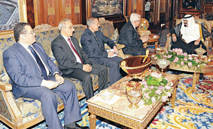 استقبل خادم الحرمين الشريفين الملك عبدالله بن عبدالعزيز آل سعود -حفظه الله- في قصره بالرياض أمس فخامة الرئيس محمود عباس رئيس اللجنة التنفيذية لمنظمة التحرير الفلسطينية رئيس السلطة الفلسطينية. وجرى خلال الاستقبال بحث تطورات القضية الفلسطينية والعراقيل التي تواجه مسيرة السلام في المنطقة إضافة إلى الأوضاع في الأراضي الفلسطينية المحتلة. حضر الاستقبال صاحب السمو الملكي الأمير سلمان بن عبدالعزيز آل سعود ولي العهد نائب رئيس مجلس الوزراء وزير الدفاع وصاحب السمو الملكي الأمير سعود الفيصل وزير الخارجية وصاحب السمو الملكي الأمير عبدالإله بن عبدالعزيز مستشار خادم الحرمين الشريفين وصاحب السمو الملكي الأمير مقرن بن عبدالعزيز المستشار والمبعوث الخاص لخادم الحرمين الشريفين وصاحب السمو الملكي الأمير بندر بن سلطان بن عبدالعزيز رئيس الاستخبارات العامة الأمين العام لمجلس الأمن الوطني وصاحب السمو الملكي الأمير محمد بن نايف بن عبدالعزيز وزير الداخلية وصاحب السمو الملكي الأمير عبدالعزيز بن عبدالله بن عبدالعزيز نائب وزير الخارجية. كما حضره من الجانب الفلسطيني معالي الناطق الرسمي باسم الرئاسة نبيل أبو ردينة ومعالي سفير دولة فلسطين لدى المملكة جمال عبداللطيف الشوبكي ومعالي رئيس جهاز المخابرات العامة ماجد فرج والمستشار الدبلوماسي مجدي الخالدي. وكان فخامة الرئيس محمود عباس رئيس اللجنة التنفيذية لمنظمة التحرير الفلسطينية رئيس السلطة الوطنية الفلسطينية قد وصل إلى الرياض أمس في زيارة للمملكة يلتقي خلالها خادم الحرمين الشريفين الملك عبدالله بن عبدالعزيز آل سعود -حفظه الله -. وكان في استقبال فخامته في مطار قاعدة الرياض الجوية صاحب السمو الملكي الأمير سعود الفيصل وزير الخارجية وسفير دولة فلسطين لدى المملكة جمال عبداللطيف الشوبكي وقائد قاعدة الرياض الجوية اللواء طيار ركن فهد ظعيان الحرير ووكيل وزارة الخارجية لشؤون المراسم السفير علاء الدين العسكري ومندوب عن المراسم الملكية.