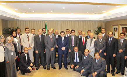 وأشار إلى أن الهيكل الجديد يتضمن وحدة خاصة بمتابعة وتقييم مستوى الجامعات البريطانية، مؤكداً حرص الملحقية على التواصل مع المؤسسات التعليمية البريطانية وبناء علاقات تعاون معها بغرض تحسين فرص انسجام طلبة وطالبات المملكة في هذه الجامعات. كما قدم الملحق عرضاً عن توجه الملحقية لتقليل الاعتماد على الورق والتحول بشكل كامل إلى الإدارة الإلكترونية في جميع أعمالها لتسهيل التواصل مع الطلبة. بعدها التقى سمو السفير بالمسؤولين والعاملين في الملحقية حيث عبر سموه عن شكره وتقديره للجهود التي يبذلها الملحق الثقافي ولمساعديه ومنسوبي الملحقية وللملاحق السابقين على جهودهم في الرعاية والاهتمام بالطلبة المبتعثين.. وأكد سمو الأمير محمد بن نواف أن زيارته ولقاء منسوبي الملحقية هي انعكاس لاهتمام خادم الحرمين الشريفين الملك عبدالله بن عبدالعزيز آل سعود وصاحب السمو الملكي الأمير سلمان بن عبدالعزيز آل سعود، ولي العهد نائب رئيس مجلس الوزراء وزير الدفاع، -حفظهما الله- بالطلبة والطالبات المبتعثين. وقال سموه: إن برنامج خادم الحرمين الشريفين للابتعاث الخارجي هو إستراتيجية للدولة ولذلك أحرص من موقعي سفيراً لخادم الحرمين الشريفين على متابعة البرنامج والوقوف على تقدمه في بريطانيا ومتابعة أبنائنا وبناتنا المتبعثين ومعرفة أحوالهم وكيفية خدمتهم وتيسير سبل زيادة تحصيلهم العلمي. وأضاف: إن الاستثمار في التعليم والعلم هو الاستثمار الحقيقي والنبيل الذي يعود مردوده على الجميع، موضحاً أن الاستثمار في التعليم نابع من رؤية القيادة الحكيمة للمملكة.. وأوضح أن ما شاهده وسمعه جعله يشعر بالاطمئنان إلى أن متطلبات نجاح برنامج الابتعاث في بريطانيا تسير بشكل صحيح بفضل الله أولاً ومن ثم بفضل جهود الجميع. وشدد سمو السفير أن على الجميع التواصل مع الطلبة والطالبات وبناء جسور الثقة معهم وبث الطمأنينة في نفوسهم ليشعروا بأن الملحقية تضم بين جنباتها أهل لهم ومن أجل المحافظة على سمعتهم وسمعة الوطن، مشدداً على أن أبواب سفارة خادم الحرمين الشريفين مفتوحة أمام جميع المواطنين وفي أي وقت. ونوه بوجود مرشدات أكاديميات سعوديات يتابعن الطالبات السعوديات وتقدمهن الدراسي، مشددا على أهمية أن توفر الملحقية هاتف للطوارئ يعمل بعد انتهاء ساعات الدوام الرسمي للملحقية.. بعدها حضر سمو الأمير محمد بن نواف بن عبدالعزيز حفل العشاء الذي أقيم بهذه المناسبة.