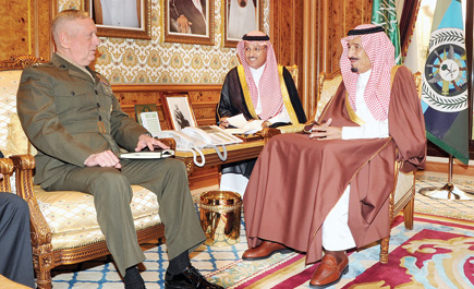 استقبل صاحب السمو الملكي الأمير سلمان بن عبدالعزيز آل سعود ولي العهد نائب رئيس مجلس الوزراء وزير الدفاع في مكتبه بالرياض أمس قائد القيادة المركزية الأمريكية الفريق أول جيمس ماتيس والوفد المرافق له. وفي بداية الاستقبال أوكل سمو ولي العهد للمسؤول الأمريكي نقل تحياته وتهانيه للرئيس الأمريكي باراك أوباما بمناسبة اختيار الشعب الأمريكي له رئيسا للولايات المتحدة الأمريكية لفترة رئاسية ثانية، متمنياً لفخامته وللشعب الأمريكي الصديق مزيداً من التقدم والازدهار، مؤكدا سموه حرص المملكة العربية السعودية بقيادة خادم الحرمين الشريفين الملك عبدالله بن عبدالعزيز آل سعود - حفظه الله - على استمرار دعم العلاقات التاريخية الوثيقة بين البلدين الصديقين في المجالات كافة. وجرى خلال الاستقبال بحث آفاق التعاون بين المملكة العربية السعودية والولايات المتحدة الأمريكية وخاصة في المجال العسكري. حضر الاستقبال صاحب السمو الملكي الأمير محمد بن سلمان بن عبدالعزيز المستشار الخاص والمشرف على المكتب والشؤون الخاصة لسمو ولي العهد، ومعالي رئيس هيئة الأركان العامة الفريق أول ركن حسين بن عبدالله القبيل ومعالي مدير عام مكتب سمو وزير الدفاع الفريق ركن عبدالرحمن بن صالح البنيان والقائم بأعمال السفارة الأمريكية في الرياض توم وليامز.
