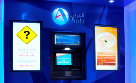 دشن البنك العربي الوطني أول موقع صراف آلي مزود بشاشات LED ذات التقنية الرقمية الحديثة مرتبطة مباشرة بالإدارة العامة للتحكم بمحتواها وتحديثها باستمرار لعرض أحدث المنتجات والعروض ورسائل التوعية الخاصة بحماية الحساب المصرفي ومعلومات أخرى تهم العملاء بأسلوب عصري وجذاب.
