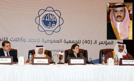 وكانت المنامة قد شهدت أمس أعمال المؤتمر الأربعين للجمعية العمومية لاتحاد وكالات الأنباء العربية بحضور معالي وزيرة الدولة لشؤون الإعلام بمملكة البحرين سميرة إبراهيم بن رجب، والمدير العام لوكالة الأنباء السعودية عبدالله بن فهد الحسين ممثلا وفد المملكة.