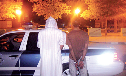 تمكنت دوريات أمن الرياض من القبض على اثنين من الجناة تورطا بارتكاب عدد من جرائم سلب الحقائب النسائية من أمام أحد الأسواق التجارية وذلك بعد اشتباه إحدى الدوريات بسيارة نوع افيو يستقلها شخصين متوقفة خلف أحد الأسواق التجارية وعندما لاحظا دورية الأمن تقترب منهما ارتكبا الفرار، وبعد متابعة السيارة وضبطها عثر بداخلها على ثلاثة إطارات احتياطية وبتفتيش المتهمين عثر بحوزتهما على ثلاثة جوالات من نوعيات مختلفة. وفي هذه الأثناء ورد بلاغان عن شخصين قاما بخطف حقيبتين من سيدتين أثناء وقوفهما أمام أحد الأسواق التجارية ويستقلان سيارة تنطبق عليها نفس مواصفات السيارة المقبوض عليها وقد حضر المبلغ الأول سعودي الجنسية وأفاد أن المتهمين قاما بسرقة حقيبة زوجته وبها مصوغات ذهب تقدر قيمتها بـ( 4000 ) ريال ومبلغ نقدي 500 ريال ويوجد بداخلها أيضا بطاقة صراف وكرت العائلة، كما حضر المبلغ الثاني من جنسية عربية وأفاد أن المدعى عليهما قاما بسرقة حقيبة زوجته وبداخلها مبلغ مالي 600 ريال وعدد من الإقامات وكروت التأمين وبطاقة صراف، تم التحفظ على الأشخاص وحجز السيارة وسلموا مع المضبوطات لمركز شرطة الروضة لاستكمال إجراءات القضية.