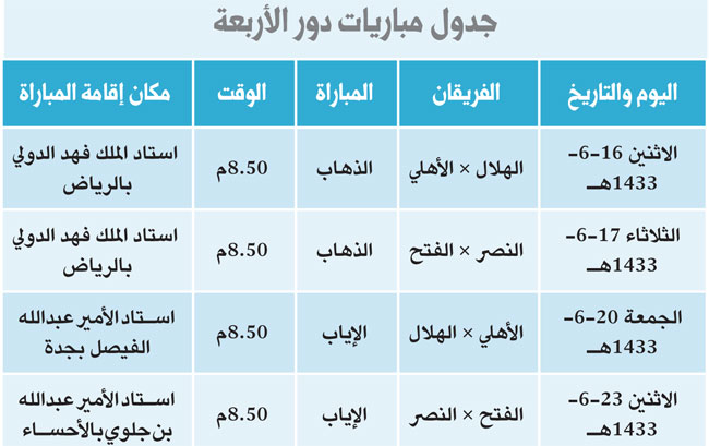 الفريقان تأهلا لهذا الدور بجدارة واستحقاق وأكدا بأنهما لن يتازلا عن آخر بطولات الموسم، فالفريق الهلالي يسعى لتحقيقها ولأول مرة في تاريخه بعد أربع مشاركات باءت بالفشل، فيما الفريق الأهلاوي يسعى للحفاظ على لقبه الذي حققه في العام الماضي أمام منافسه التقليدي الاتحاد...