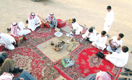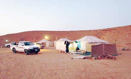 رغم قسوة العيش والمقام في الصحراء، وموالفة حياة المدنية والترف إلا أن البعض من السعوديين أصبح يأبى إلا أن يكسر روتين المدنية وصخب المدينة بحثا عن الهدوء والعيش وسط طبيعة ينعم فيها بمشاهدة شروق وغروب الشمس والاستمتاع بأشعتها على أجسادهم.