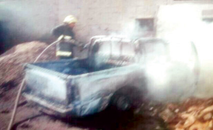 أخمد مدني الأفلاج حريقاً شب في سيارة من نوع هايلوكس غمارتين موديل 2012 وتعود تفاصيل الحادثة بعد أن تلقت غرفة العمليات بالدفاع المدني بمحافظة الأفلاج ومباشرتها فور تلقي البلاغ وبعد إخماد الحريق تبين أن السيارة بدون لوحات وقام الدفاع المدني بتسليم السيارة للشرطة حسب الاختصاص للاشتباه في وضع السيارة لوجودها على الطريق السريع وخلف غرفة قديمة ولعدم وجود صاحب السيارة فيما باشرتها الشرطة وتم تطويق الموقع حتى تم نقلها لمعرفة من صاحبها والتحقيق في ذلك.