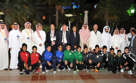 كرَّم رئيس الاتحاد السعودي لكرة القدم الأستاذ أحمد بن عيد الحربي أعضاء ورؤساء ووفود المنتخبات المشاركة في المجموعة الثانية لتصفيات غرب آسيا المؤهَّلة لنهائيات كأس آسيا للبراعم تحت 14 سنة التي تقام في مدينة الدمام. وذلك خلال الحفل الذي أقامته اللَّجْنة المنظمة بمقر سكن الوفود بفندق شيراتون الدمام يوم أمس وتَمَّ خلال الحفل تبادل الدروع التذكارية وتكريم رؤساء الوفود وأعضاء اللجان المنظمة لتصفيات. وشهد الحفل حضور أمين عام اللَّجْنة الأولمبية السعوديَّة الأستاذ محمد المسحل ومدير عام مكتب الرئاسة العامَّة بالمنطقة الشرقيه الأستاذ فيصل العبدالهادي وعدد من أعضاء مجلس إدارة الاتحاد السعودي لكرة القدم يتقدمهم الأستاذ عمر المهنا والأستاذ عدنان المعيبد وعدد من رؤساء الأندية بالمنطقة الشرقيَّة. وبدأ الحفل بآيات من الذِّكر الحكيم، ثمَّ ألقى الأستاذ أحمد عيد كلَّمه ارتجالية رحب من خلالها بالوفود المشاركة في التصفيات بالمملكة ونقل لهم تحيات صاحب السمو الملكي الأمير نواف بن فيصل الرئيس العام لرعاية الشباب ورئيس اللَّجْنة الأولمبية السعوديَّة وأوضح لهم من خلال كلمته أن العمل في الفئات السنية وخصوصًا البراعم هو عملٌ شاقٌ ومضنيٌّ ويحتاج إلى مجهود كبير، متمنيًّا لهم النجاح والتوفيق. من جانبه ألقى الدكتور شامل كامل منسق بطولات الاتحاد الآسيوي تحت 14 سنة كلمة قدّم خلالها شكره إلى الاتحاد السعودي لكرة القدم على هذه الاستضافة مشيدًا بنجاح التنظيم والإعداد لهذه الاستضافة. وتَضمَّن الحفل العديد من الفقرات كإقامة بعض الفلوكلورات الشعبية التي شارك فيها الضيوف وبعدها تناول الجميع طعام العشاء المعدُّ بهذه المناسبة.