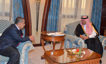 التقى صاحب السمو الملكي الأمير محمد بن نايف بن عبدالعزيز وزير الداخلية في الرياض أمس، معالي وزير الداخلية بجمهورية مصر العربية اللواء محمد إبراهيم ومعالي وزير الداخلية والأمن الوطني بدولة فلسطين الدكتور سعيد أبو علي ومعالي وزير الداخلية والبلديات بالجمهورية اللبنانية مروان شربل، ومعالي وزير الداخلية والإعلام بجمهورية القمر المتحدة أحمد عبدالله، ومعالي وزير الداخلية واللامركزية الجيبوتي حسن درار هفنيه، الذين يزورون المملكة حالياً للمشاركة في أعمال الدورة الثلاثين لمجلس وزراء الداخلية العرب المزمع انعقادها اليوم.