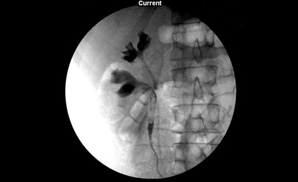 أما الحصوة الموجودة بالحالب الآخر فتم التعامل معها بوضع «أنبوب» داخلي يعمل على توسيع الحالب وذلك لتضيقه الشديد مع الحفاظ على عدم انسداده مرة أخرى لضمان نزول البول من حوض الكلية إلى المثانة، بالإضافة إلى تفتيت الحصوة عن طريق استخدام تقنيات الموجات التصادمية (ESWL).